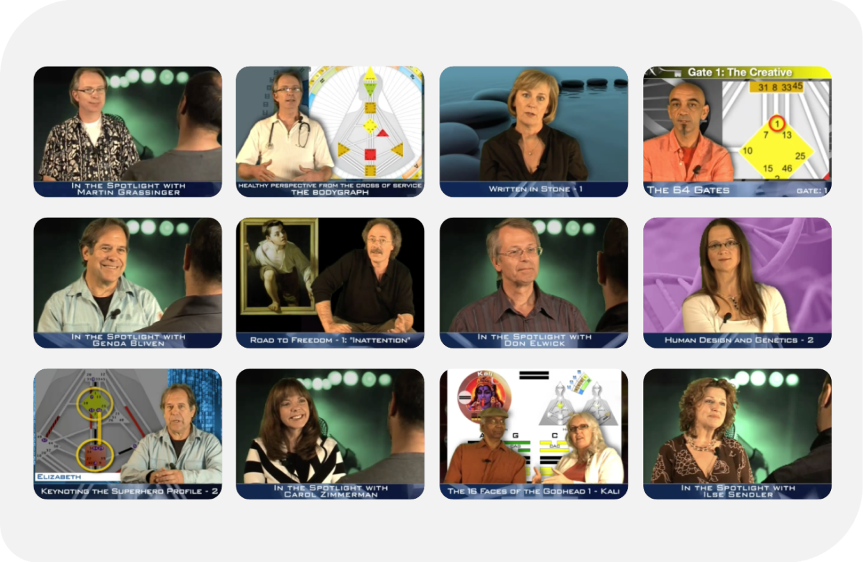 300+ videos, 105+ hours of Human Design knowledge, organized into a recommended learning order